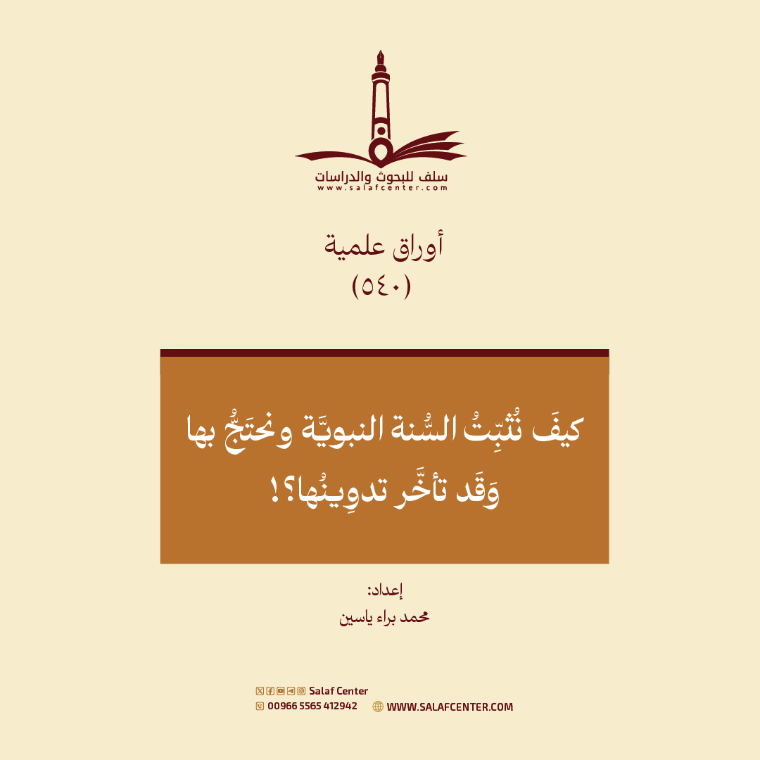 للتحميل كملف PDF اضغط على الأيقونة مقدمة: إنَّ إثارةَ الشكوك حول حجّيّة السنة النبوية المشرَّفة بسبب تأخُّر تدوينها من الشبهات الشهيرة المثارة ضدَّ السنة النبوية، وهي شبهة قديمة حديثة؛ فإننا نجدها في كلام الجهمي الذي ردّ عليه الإمامُ عثمانُ بن سعيد الدَّارِميُّ (ت 280هـ) رحمه الله -وهو من أئمَّة الحديث المتقدمين-، كما نجدها في كلام […]
