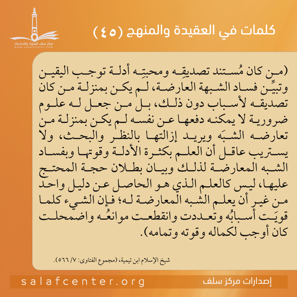 للتحميل كملف PDF اضغط على الأيقونة مقدمة: اختلف العلماء في الموقف من علم الكلام، فمنهم المادح الممارس، ومنهم الذامّ المحترس، ومنهم المتوسّط الذي يرى أن علم الكلام نوعان: نوع مذموم وآخر محمود، فما حقيقة علم الكلام؟ وما الذي يفصِل بين النوعين؟ وهل يمكن أن يكون هناك علم كلام سلفيّ؟ وللجواب عن هذه الأسئلة وغيرها رأى […]