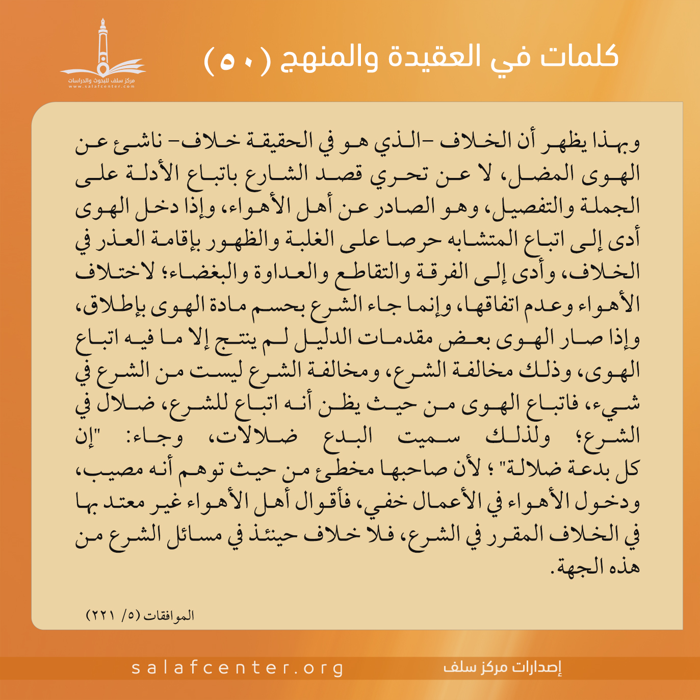 للتحميل كملف PDF اضغط على الأيقونة مقدمة: اختلف العلماء في الموقف من علم الكلام، فمنهم المادح الممارس، ومنهم الذامّ المحترس، ومنهم المتوسّط الذي يرى أن علم الكلام نوعان: نوع مذموم وآخر محمود، فما حقيقة علم الكلام؟ وما الذي يفصِل بين النوعين؟ وهل يمكن أن يكون هناك علم كلام سلفيّ؟ وللجواب عن هذه الأسئلة وغيرها رأى […]