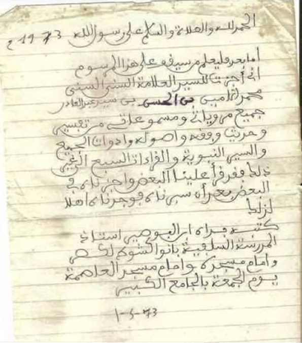 ([3]) من مقابلة أجراها معه الطيب عمر، وهي ضمن كتاب: السلفية وأعلامها في موريتانيا (ص: 476).