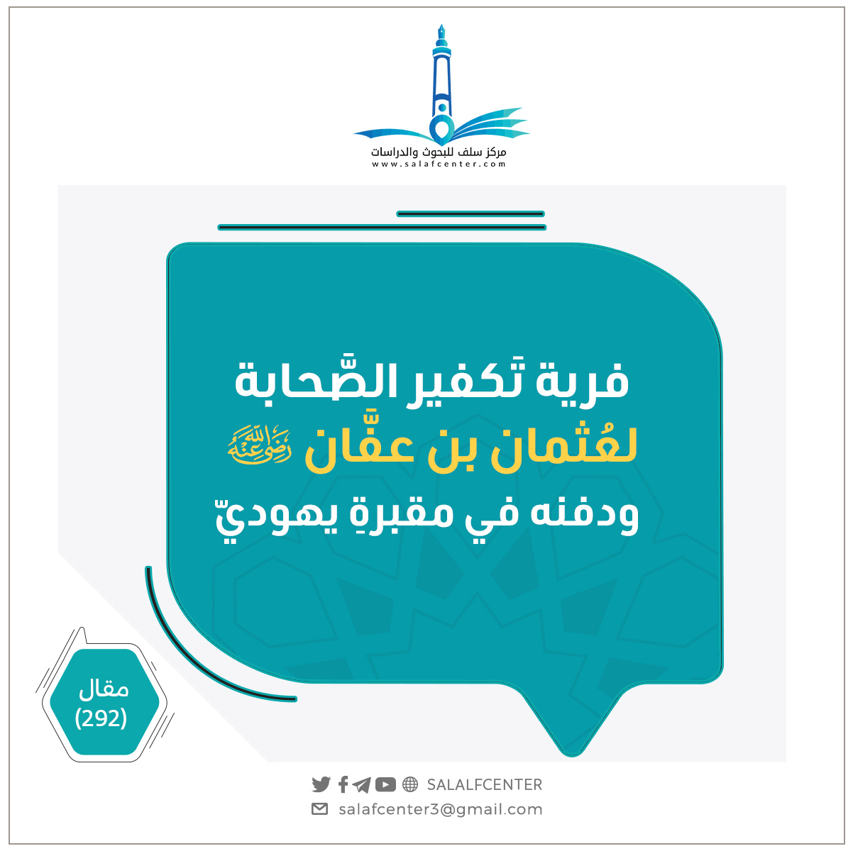 للتحميل كملف PDF اضغط على الأيقونة   مقدمة: تعدَّدت وجوه العلماء في تقسيم الفرق والمذاهب، فتباينت تحريراتهم كمًّا وكيفًا، ولم يسلم اعتبار من تلك الاعتبارات من نقدٍ وملاحظة، ولعلّ أسلمَ طريقة اعتبارُ التقسيم الزمني، وقد جرِّب هذا في كثير من المباحث فكانت نتائج ذلك محكمة، بل يستطيع الباحث أن يحاكم الاعتبارات كلها به، وهو تقسيم […]