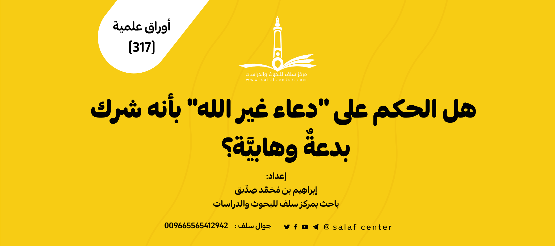 للتحميل كملف PDF اضغط على الأيقونة خامسًا: الاستدلال بإباحة التوسل وشدّ الرحل لقبور الصالحين: استدلّ المخالفون بما أجازه جمهور المتأخرين من التوسّل بالصالحين، أو إباحة تحرّي دعاء الله عند قبور الصالحين، ونحو ذلك، وهاتان المسألتان لا يعتبرهما السلفيون من الشّرك، وإنما يختارون أنها من البدع؛ لأنّ الداعي إنما يدعو الله تعالى متوسلًا بالصالح، أو عند […]
