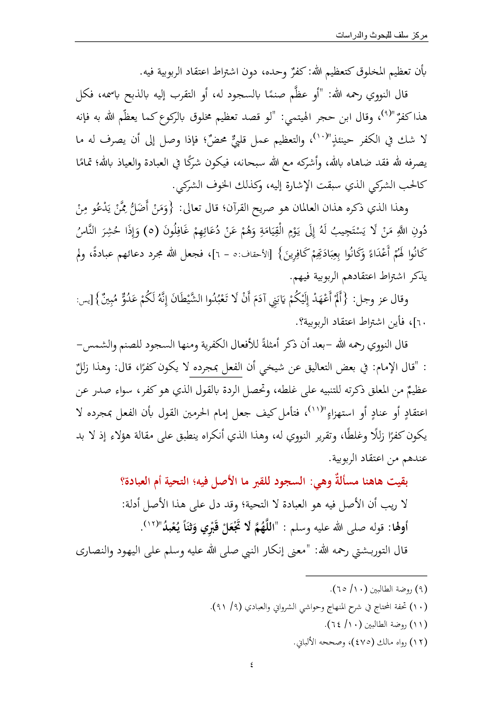 للتحميل كملف PDF اضغط على الأيقونة مقدمة: من المعلوم أن مسائل التوحيد والشرك من أخطر القضايا التي يجب ضبطها وفقَ الأدلة الشرعية والفهم الصحيح للكتاب والسنة، إلا أنه قد درج بعض المنتسبين إلى العلم على الاستدلال بأقوال بعض الفقهاء المتأخرين لتبرير ممارساتهم، ظنًّا منهم أن تلك الأقوال تؤيد ما هم عليه تحت ستار “الخلاف الفقهي”، […]